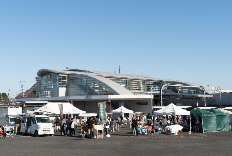 無人販売所を使ったり、キッチンカーを出店したりイベントを実施したり、みんなで楽しくマルシェを開催したり。駅前立地を活用してみてください。